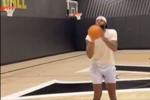 体育资讯8月22日讯 今年休赛期,尼克斯中锋米切尔-罗宾逊苦练罚球。