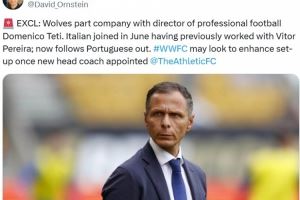 报道称这位意大利总监于今年6月加入球队,此前曾与主帅佩雷拉共事,现在他跟随葡萄牙主帅的脚步离开了俱乐部。狼队可能会在新任主教练确定后进一步调整球队架构。